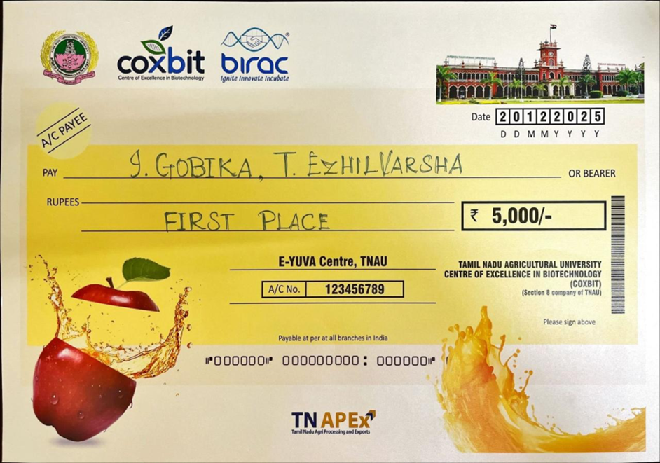 The competition was conducted as part of the Food & Natural Products Innovation Expo 2025, held on 20th and 21st December 2025at the COXBIT, TNAU Campus, Coimbatore.